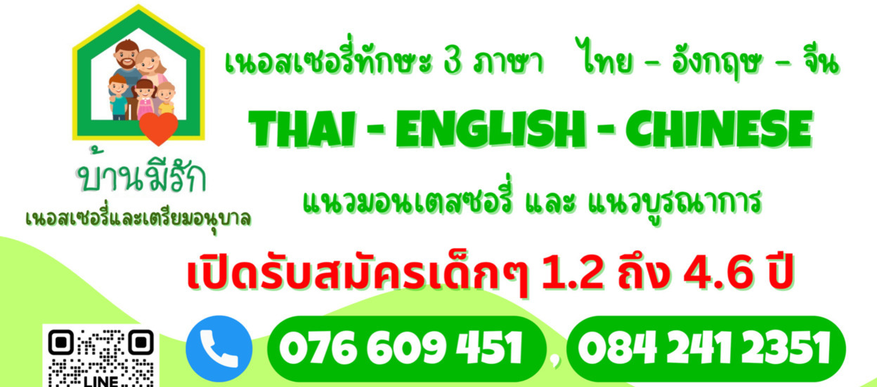 - **Montessori Nursery in 3 languages: Thai-English-Chinese. Phone number 076-609356 LINE:@baanmeraknursery**